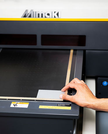 Nuestra máquina de grabado a color funciona muy similar a una impresora, pero con tintes especiales que reaccionan con un baño de luz UV para quedar fijas permanentemente sobre cualquier superficie.